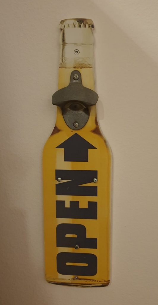 Wunderbar: Feierabend, Wochenende und Freunde da! Zeit sich ein blondes Kaltgetränk zu öffnen. Ein Glück hängt da ein Bieröffner an der Wand. Wer den wohl dahin gemacht hat? Der muss ja einen guten Richer gehabt… Doch was ist das für ein klingendes Geräusch? Ist etwa der Kronkorken auf den Boden gefallen?